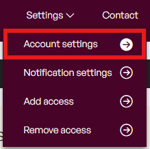 Once logged into your account, select Settings > Account settings: