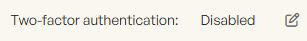 Within the User settings section, select the edit button next to Two-factor authentication: