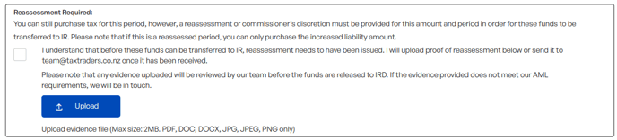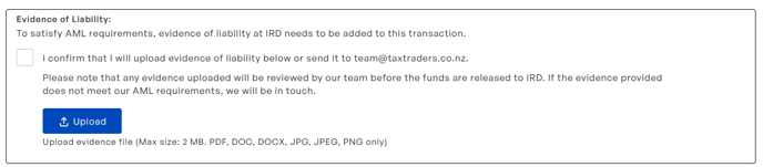 If you would prefer to send us evidence over email or have multiple documents you would like to attach, please send these to team@taxtraders.co.nz.